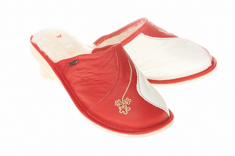 Model został ozdobiony delikatnym haftem w formie kwiatowego motywu, który dodaje mu uroku i sprawia, że kapcie nabierają wyjątkowego charakteru. To elegancki detal podkreślający ich tradycyjny, a zarazem stylowy wygląd.