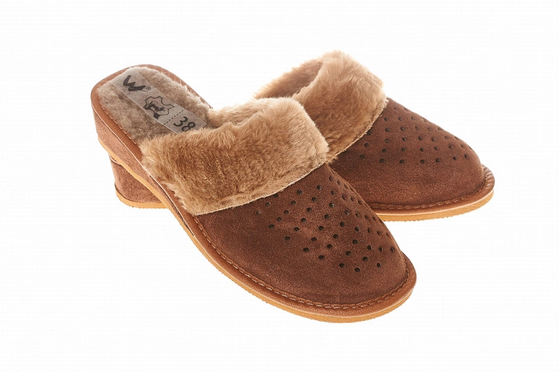 Wygodne Damskie zabudowane kapcie ze skóry naturalnej Wójciak Podhale