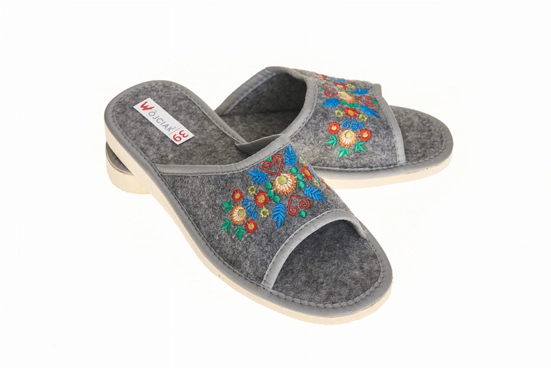 Ozdobne wygodne Pantofle damskie kapcie z filcu z odkrytymi palcami Wójciak