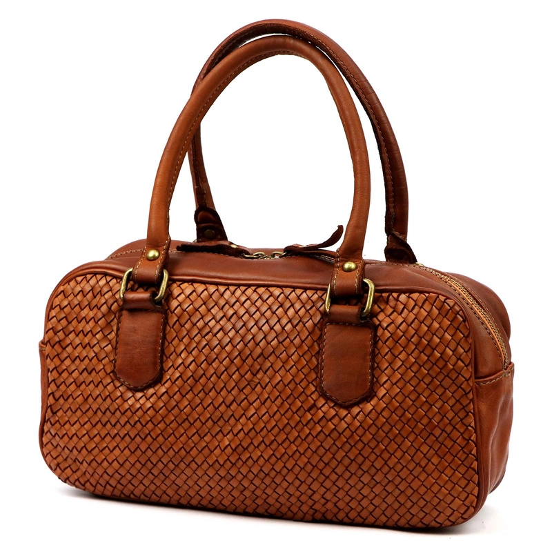 Vera Pelle – mała skórzana torebka damska z plecionym wzorem