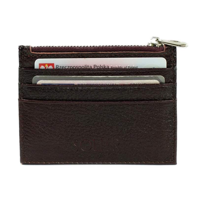 Skórzany portfel na karty z zamkiem etui slim Solier SW42 RED