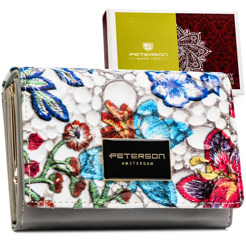 Wielokolorowy portfel damski ze skóry naturalnej zamykany zatrzaskiem i biglem - Peterson