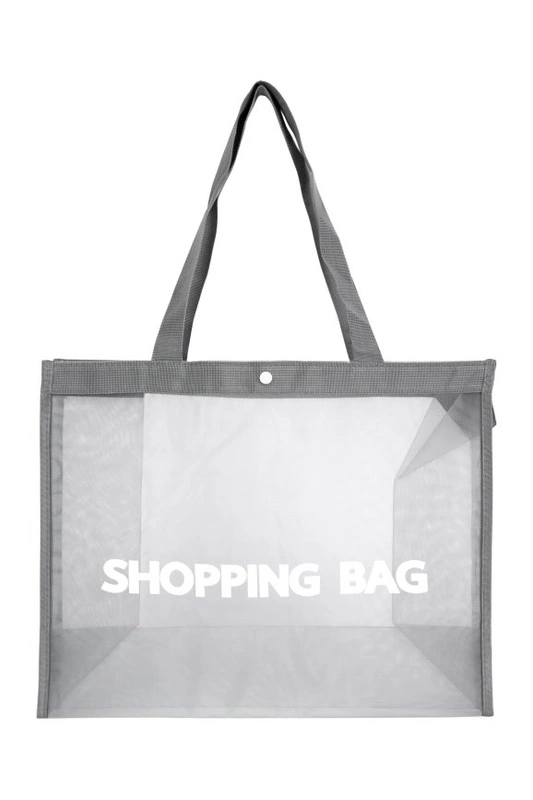 Duża torba damska typu shopper wykonana z przezroczystego materiału.
