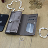 Wewnątrz widnieją dwie kieszonki, które przeznaczone są do przechowywania monet. Jedna zamykana jest na zatrzask, a druga na bigiel. Dzięki temu swobodnie zagospodarujesz swoimi groszakami. 5 przegródek dla kart i 3 komory dla banknotów, które pomieszczą również inne, najbardziej potrzebne drobiazgi. Portfel został wykończony srebrnymi zdobieniami, które bez wątpienia dodają eleganckiego i ponadczasowego charakteru.