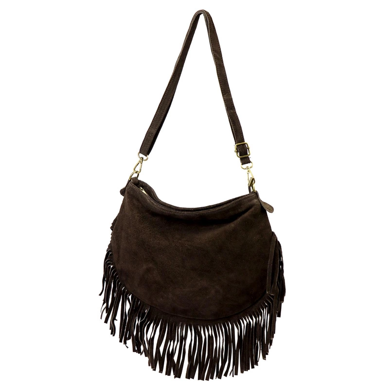 Zamszowa damska listonoszka z frędzlami torebka na ramię skórzana Luka