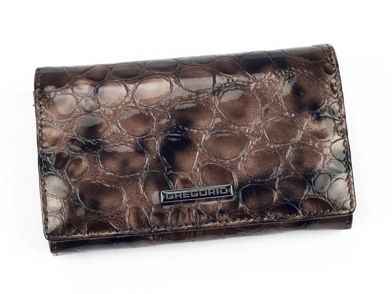 Wyjątkowy, damski portfel o niepowtarzalnym wzorze typu skóra węża. Wykonanie z solidnej i bardzo dobrej jakości skóry naturalnej, lakierowanej, która jest odporna na wszelkiego rodzaju otarcia. Producent Gregorio, wykonał ten model z uwagą i troską o najmniejszy szczegół.