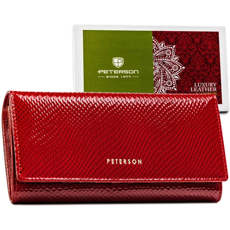 Czerwony, skórzany portfel damski ze wzorem imitującym gadzią skórę - Peterson