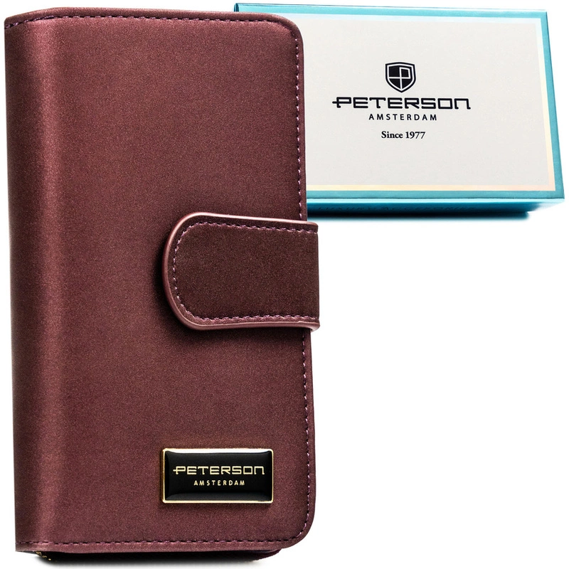 Fioletowy portfel damski ze skóry naturalnej i ekologicznej zamykany na zatrzask i suwak - Peterson