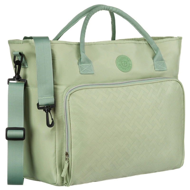- Zielona torba weekendowa wykonana z poliestru. Pojemna, wyposażona w regulowany pasek. Idealna na wyjścia na siłownię, do pracy lub na podróże. Posiada funkcję mocowania na walizce. Jednokomorowa.