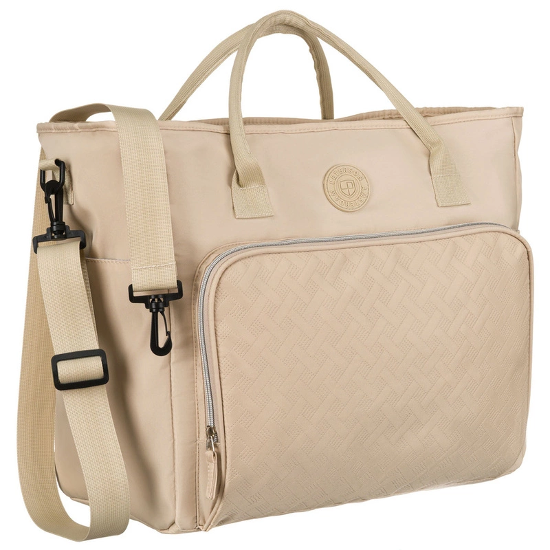 Praktyczna torba podróżna z poliestru w beżowym kolorze, wyposażona w uchwyt na walizkę - Peterson