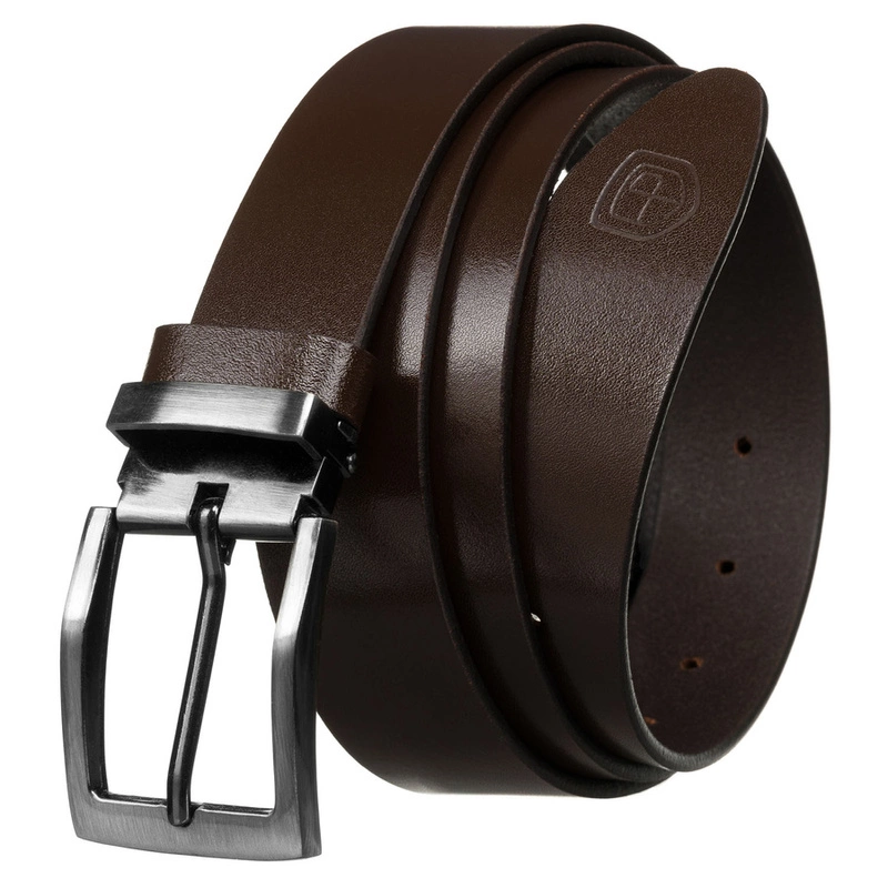 - Ten brązowy pasek to must-have w garderobie każdego mężczyzny ceniącego wygodę i elegancję. Wykonany ze skóry naturalnej. Ma 7 precyzyjnie rozmieszczonych dziurek i klasyczną, metalową klamrę. Pasek można samodzielnie skrócić.