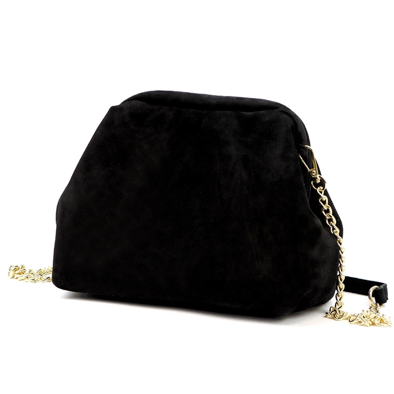 Zgrabna Skórzana damska zamszowa wizytowa torebka z łańcuszkiem Luka