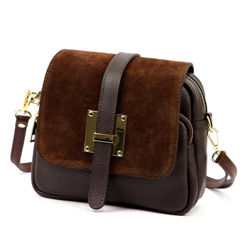 Zgrabna Listonoszka damska skórzana z zamszową klapą z kieszeniami Luka