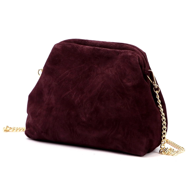 Zgrabna Skórzana damska zamszowa wizytowa torebka z łańcuszkiem Luka