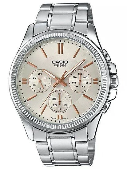 Zegarek Casio MTP-1375D 7A2VDF to model, który łączy elegancki wygląd z niezawodnymi funkcjami, idealny dla mężczyzn ceniących nowoczesny design i praktyczność. Jego elegancka tarcza w odcieniu perłowym, subtelnie kontrastująca z wskazówkami i indeksami, nadaje mu wyrafinowanego charakteru, który doskonale pasuje do zarówno casualowych, jak i formalnych stylizacji. Dodatkowo, elegancka stalowa koperta i bransoleta sprawiają, że zegarek prezentuje się wyjątkowo, a jego wykończenie świadczy o dbałości o detale i wysoką jakość wykonania.