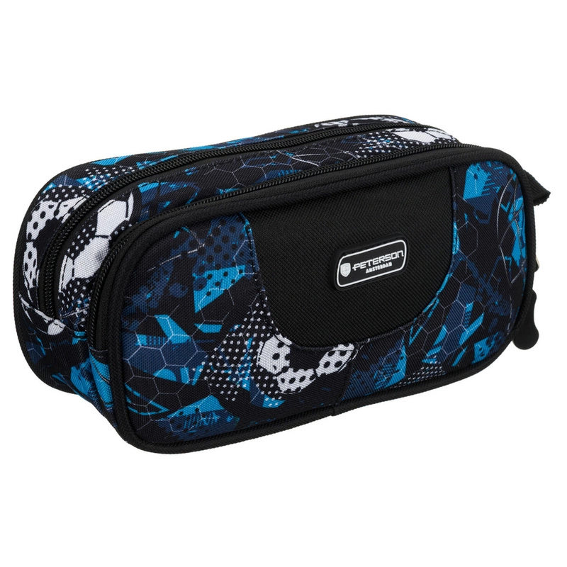 Dwukomorowy piórnik szkolny we wzór piłki nożnej - Peterson