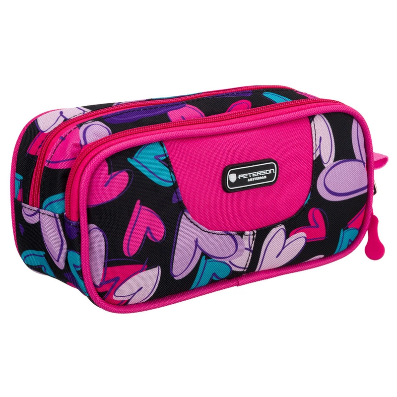 Wielokolorowy piórnik szkolny z poliestru w serduszka, zamykany suwakami - Peterson