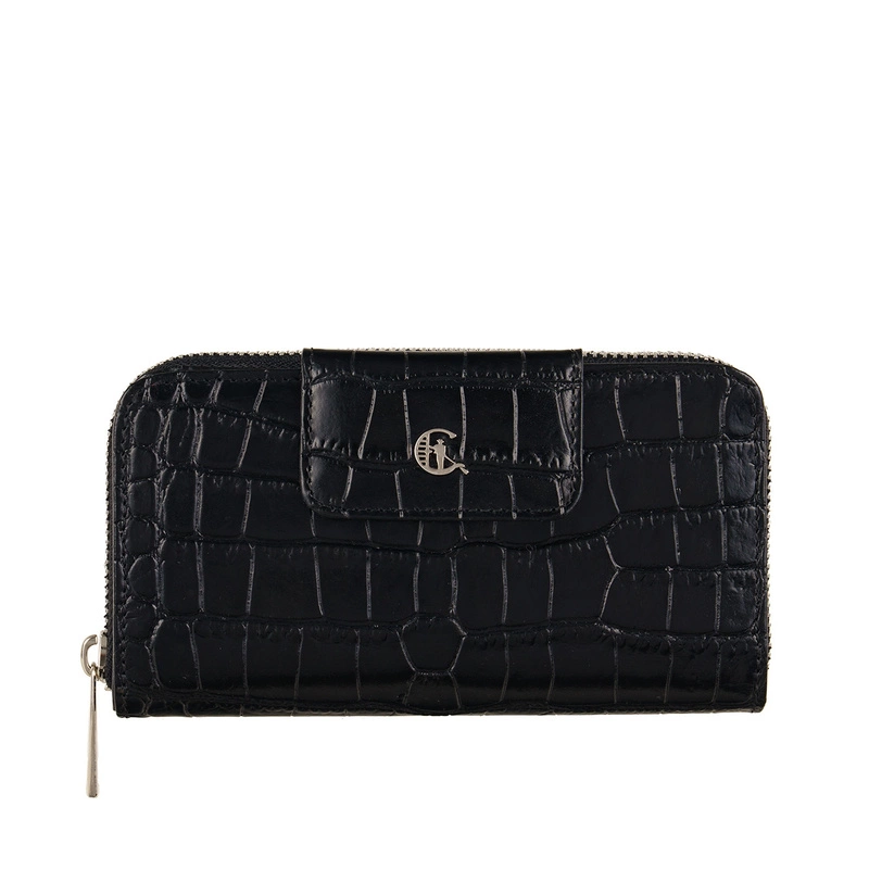 Portfel damski marki Canaletto, wykonany z najwyższej jakości włoskiej skóry licowej garbowanej roślinnie o wzorze krokodyla w głębokim czarnym odcieniu, to idealny wybór dla kobiet, które poszukują luksusowego wyglądu i przestronności. Dzięki eleganckim detalom i nowoczesnemu zabezpieczeniu RFID, ten portfel spełnia wszystkie oczekiwania współczesnych użytkowniczek ceniących bezpieczeństwo i styl.