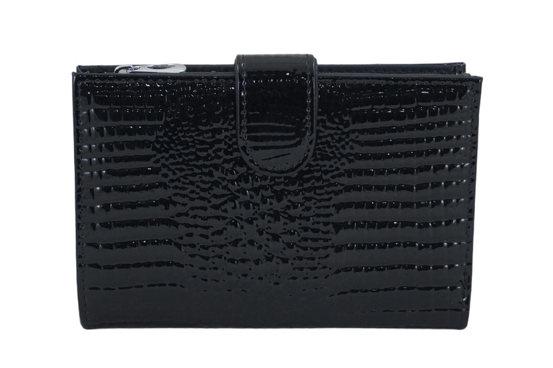 Portfel skórzany damski lakierowany na zatrzask - Czarny