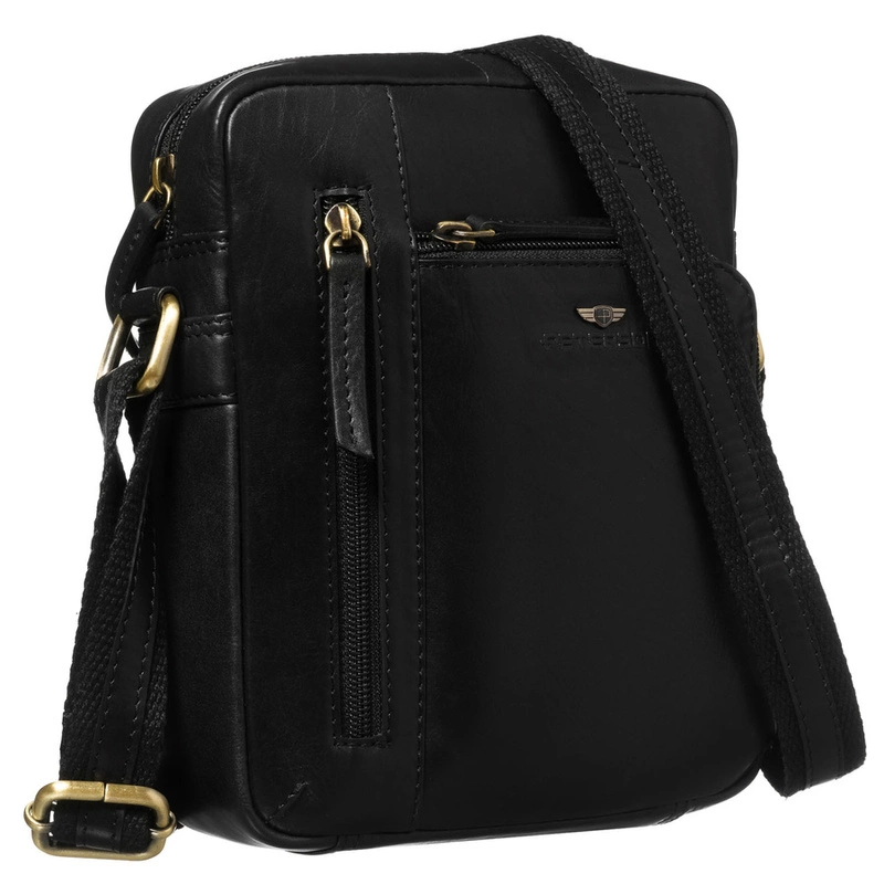 Elegancka, czarna listonoszka męska ze skóry naturalnej z zewnętrzną kieszonką na suwak - Peterson