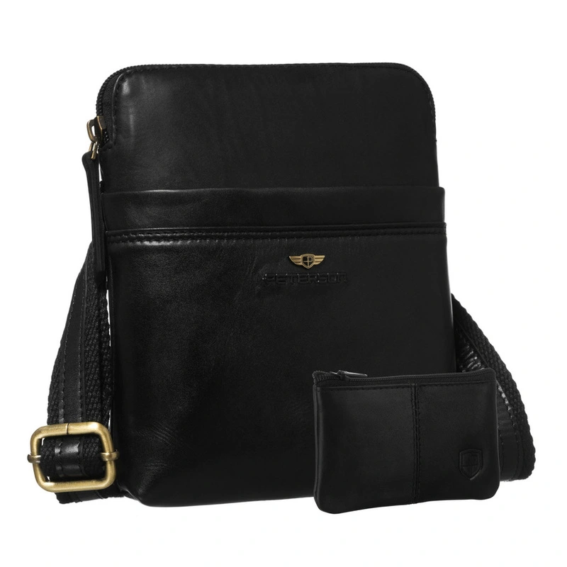 - Czarna, miejska listonoszka męska ze skóry naturalnej. Lekka i pojemna, zamykana suwakiem. Wyposażona w wiele kieszonek ułatwiających organizację. Jednokomorowa i zawieszona na regulowanym pasku.