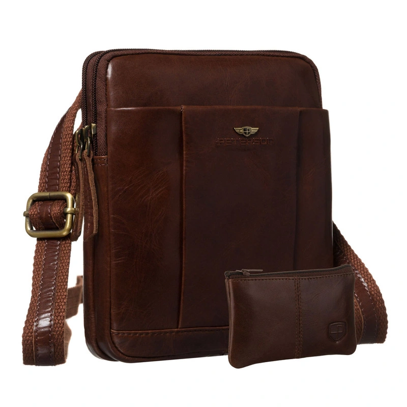 Dwukomorowa, brązowa listonoszka męska ze skóry naturalnej - Peterson