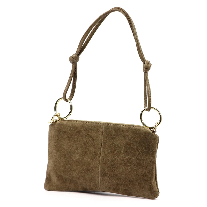 Ta mała torebka damska Vera Pelle to połączenie klasycznego stylu i funkcjonalności, które sprawdzą się zarówno w codziennych stylizacjach, jak i podczas wyjątkowych okazji. Wykonana z wysokiej jakości naturalnej skóry zamszowej, zachwyca subtelnym wyglądem, a złote okucia dodają jej nuty elegancji i luksusu.