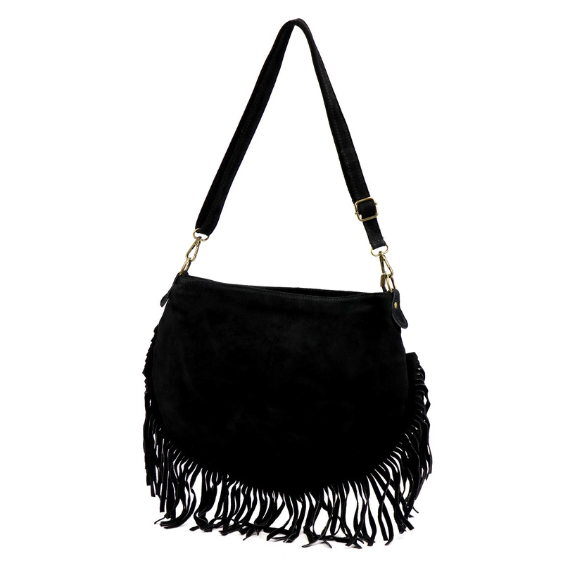 Zamszowa damska listonoszka z frędzlami torebka na ramię skórzana Luka