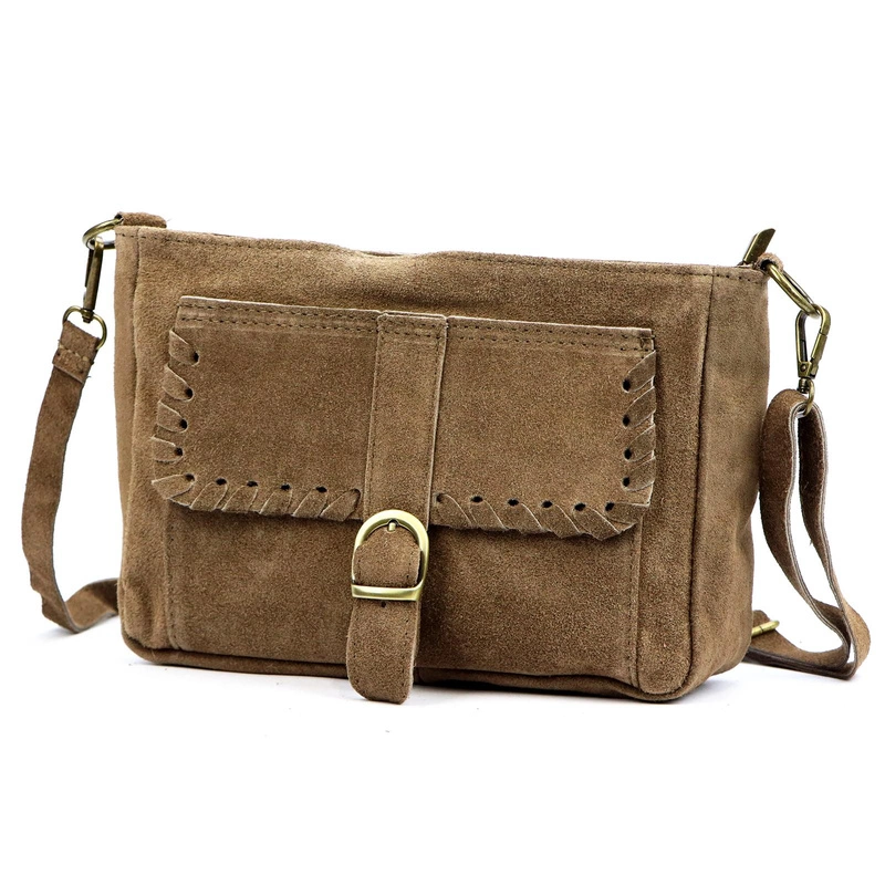 Damska zamszowa skórzana listonoszka z zewnętrzną kieszenią torebka Luka