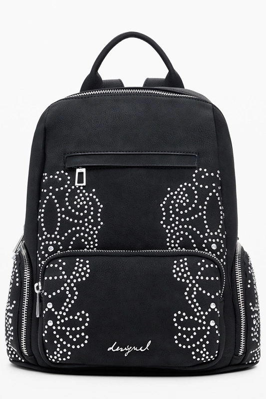 - PLECAK POKER FACE CHESTER MINI, 1 UCHWYT, REGULOWANE PASKI NA RAMIĘ, 2 ZEWNĘTRZNE PRZEDNIE KIESZENIE, 1 Z TYŁU I 2 BOCZNE KIESZENIE, 1 WEWNĘTRZNA KIESZEŃ, KONTRASTOWE DETALE, APLIKACJE NABIJANE ĆWIEKAMI, ZAMKNIĘCIE NA ZAMEK, LOGO