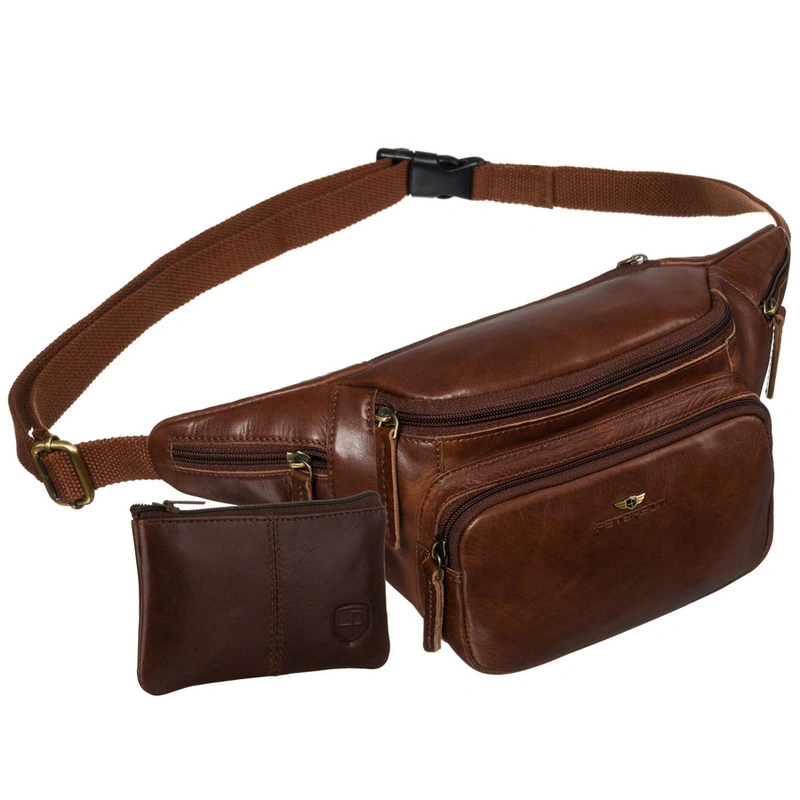- Stylowa nerka męska Peterson wykonana z naturalnej skóry w brązowym kolorze. Wyposażona w regulowany pasek na biodra, przestronną kieszeń główną oraz dodatkowe kieszenie na suwak. Idealna do przechowywania niezbędnych drobiazgów w wygodny sposób.