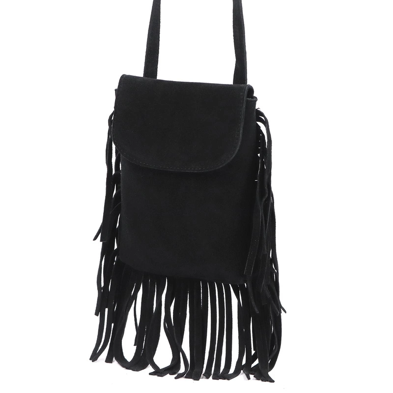 Stylowa i zgrabna Mała damska listonoszka skórzana z frędzlami Luka