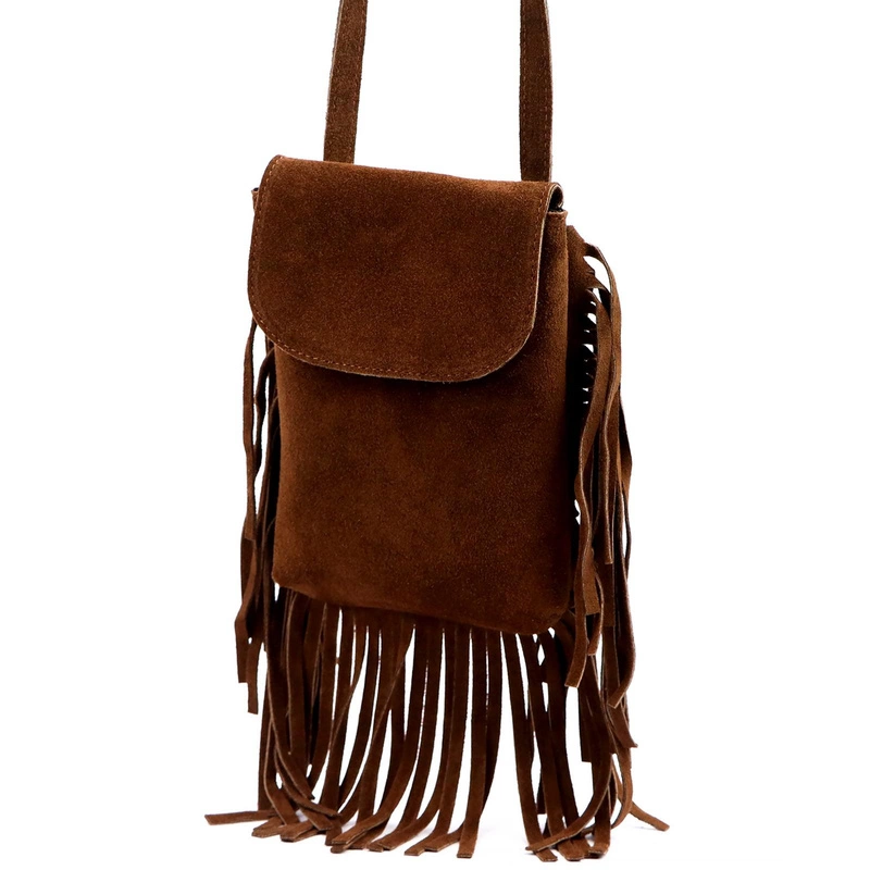 Stylowa i zgrabna Mała damska listonoszka skórzana z frędzlami Luka