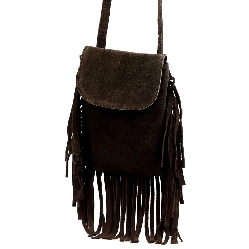 Stylowa i zgrabna Mała damska listonoszka skórzana z frędzlami Luka