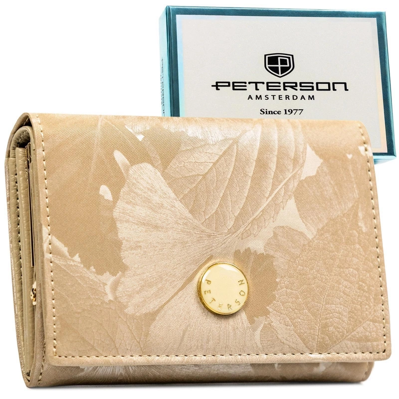 Beżowy portfel damski ze skóry naturalnej i ekologicznej z systemem RFID - Peterson