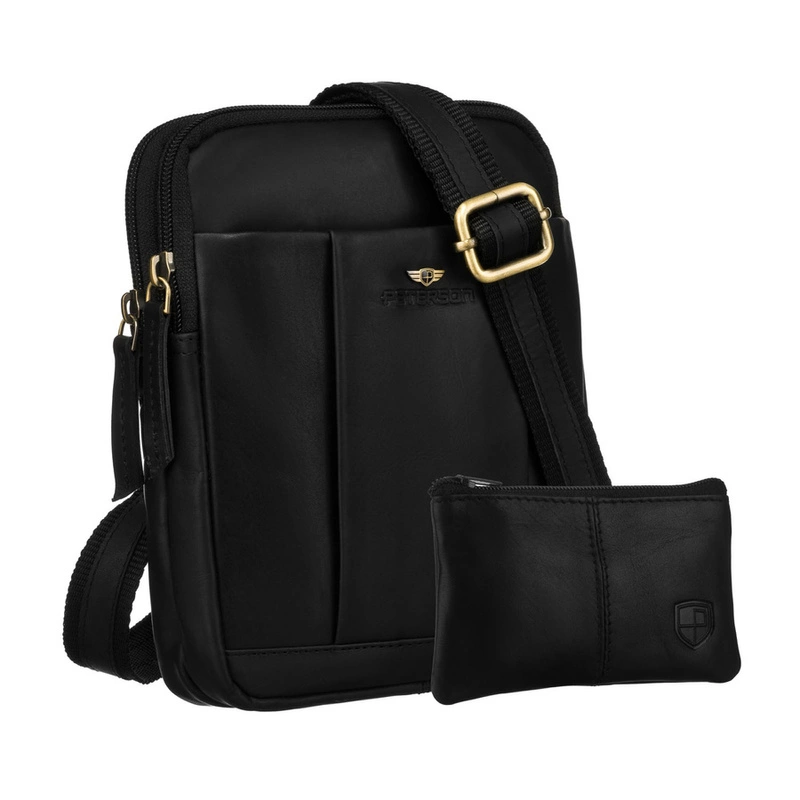 - Elegancka męska torebka Peterson z wysokiej jakości skóry naturalnej w czarnym kolorze. Wyposażona w regulowany pasek. Wnętrze zamykane bezpiecznym suwakiem zawiera praktyczne kieszonki. W zestawie etui na klucze.