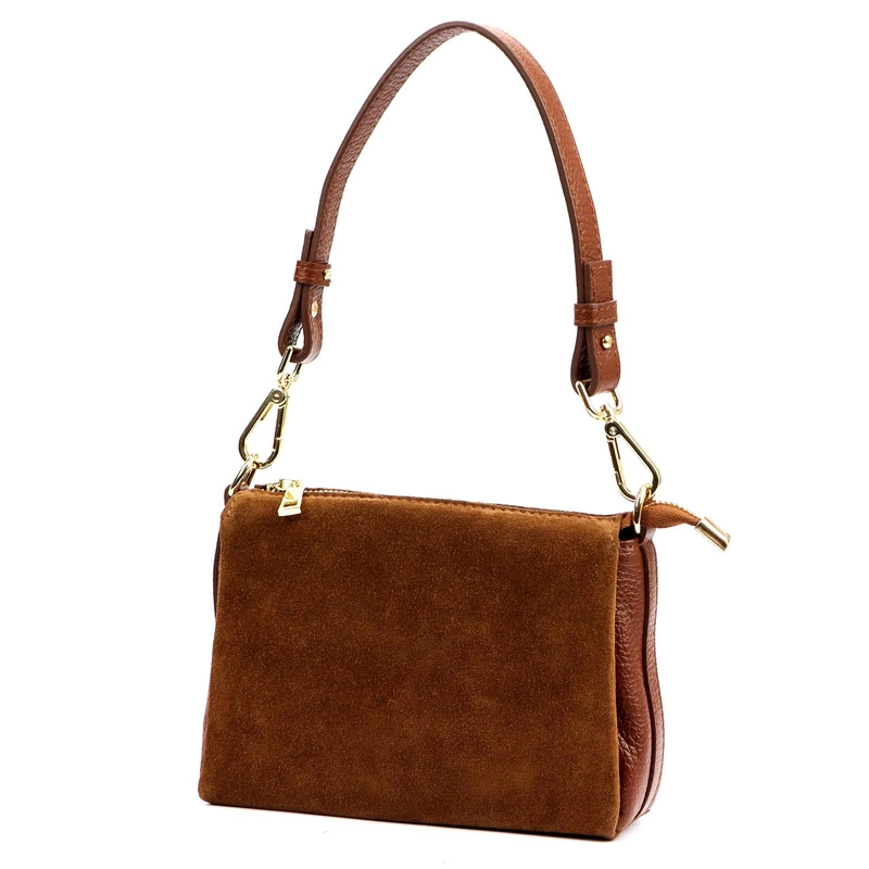 Luka damska listonoszka skórzana zamsz trzykomorowa torebka na ramię