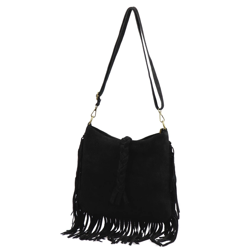 Luka Listonoszka damska skórzana z frędzlami boho torebka na ramię