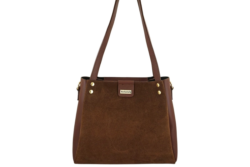 Klasyczna torebka skórzana z zamszem - Brązowa