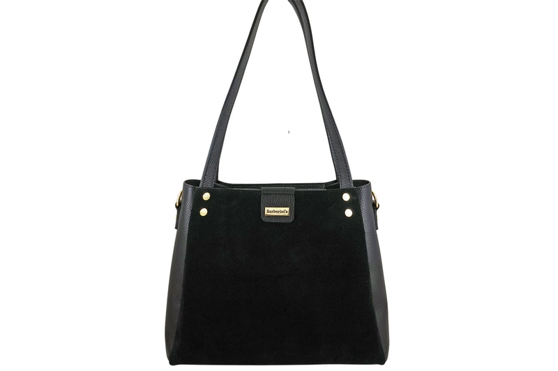 Klasyczna torebka skórzana z zamszem w kolorze czarnym jest wykonana z wysokiej jakości skóry naturalnej. Połączenie zamszu ze skórą licową wyróżnia model w najnowszej kolekcji torebek klasycznych idealnych zarówno do pracy, jak i na spotkania czy eleganckie wyjścia. Dwa uchwyty zapewniają wygodę noszenia zarówno w dłoni, jak i na ramieniu. Wykonana z dbałością o szczegóły, zachwyca trwałością oraz pięknym wykończeniem - Twoja stylizacja nabierze wyjątkowego charakteru. Klasyczna torebka skórzana z zamszem to propozycja dla Pań ceniących gustowne dodatki codziennej garderoby, zwracających uwagę na jakość i estetykę wykonania produktu ze skóry naturalnej. Gwarantujemy zadowolenie z zakupionych torebek oraz szybką wysyłkę Państwa zamówienia.