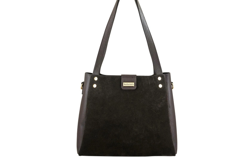 Klasyczna torebka skórzana z zamszem - Brązowa ciemna