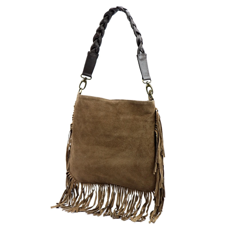 Luka damska listonoszka skórzana zamsz boho torebka na ramię z frędzlami
