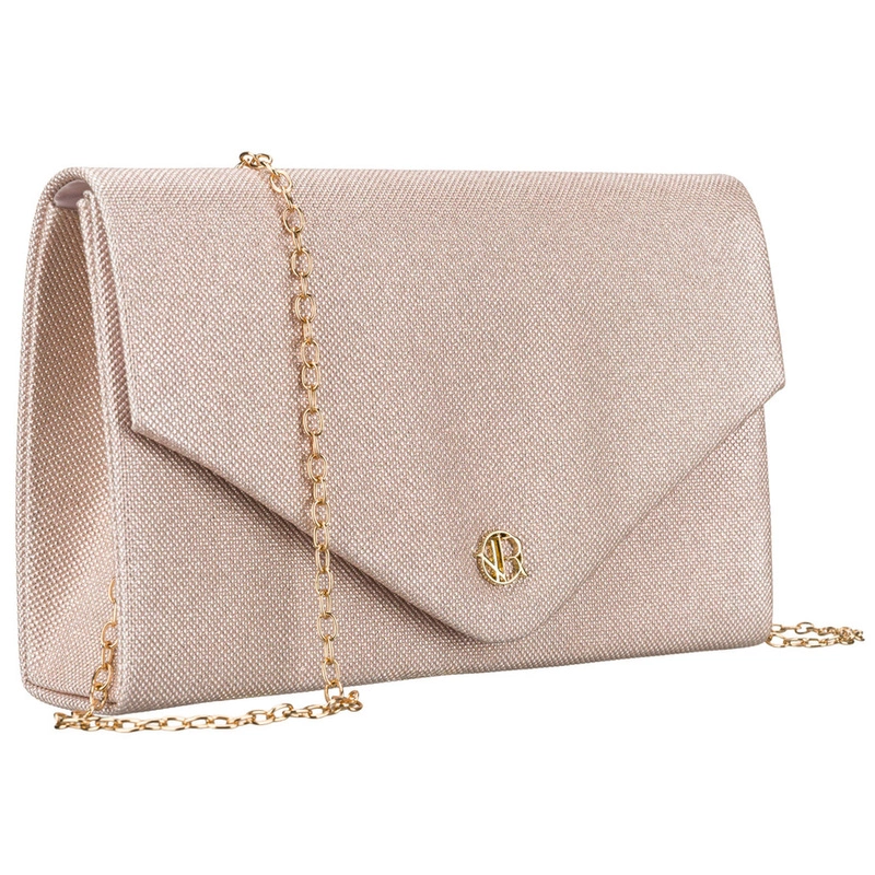 - Beżowa kopertówka w odcieniu szampańskim. Jej brokatowa, subtelnie błyszcząca powierzchnia pięknie odbija światło, a złoty łańcuszek dodaje biżuteryjnego charakteru. Jako torebka wizytowa i torebka wieczorowa dopełni eleganckie stylizacje.