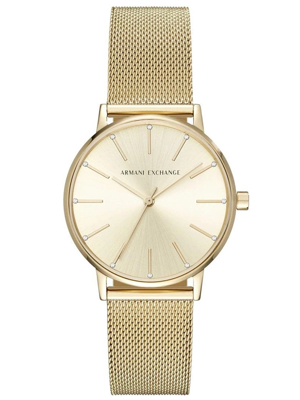 Armani Exchange to pełnoprawna marka stworzona przez znanego na całym świecie projektanta Giorgio Armaniego, zachowując tą samą jakość i prestiż,co jej bliźniacza marka Emporio Armani czy Armani Jeans. Również zasila sektor dóbr luksusowych. W tym przypadku jednak wśród odbiorców są głównie osoby młode. Zegarek Armani Exchange AX5536 swój modny design zawdzięcza rewelacyjnemu połączeniu koperty w kolorze złotym, z bransoletą typu mesh i złotą tarczą. Ten damski model znakomicie sprawdzi się jako modny dodatek na nadgarstku każdej nowoczesnej kobiety. Jak wszystkie zegarki AX w niesamowity sposób łączy w sobie markowy design, najmodniejsze trendy oraz ponadczasową, wyrafinowaną elegancję.