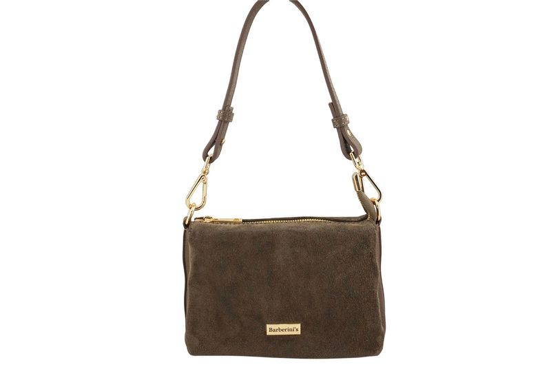 Zamszowa listonoszka damska Barberini's w kolorze ciemnego beżu została wykonana ze skóry naturalnej. Klasyczny, minimalistyczny design pasujący do wielu stylizacji - zamszowa listonoszka damska Barberinis to dodatek, który łączy w sobie elegancję, funkcjonalność i ponadczasowy styl. Doskonale sprawdzi się o każdej porze roku i w wielu sytuacjach – od codziennych spacerów po spotkania w gronie znajomych. Wykonana z miękkiego zamszu, zachwyca swoją delikatną fakturą i subtelnymi złotymi elementami, które dodają każdej stylizacji nuty wyrafinowania. Jej kompaktowy rozmiar sprawia, że jest idealna na co dzień – pomieści najważniejsze drobiazgi, takie jak telefon, portfel czy klucze, nie obciążając przy tym ramienia.