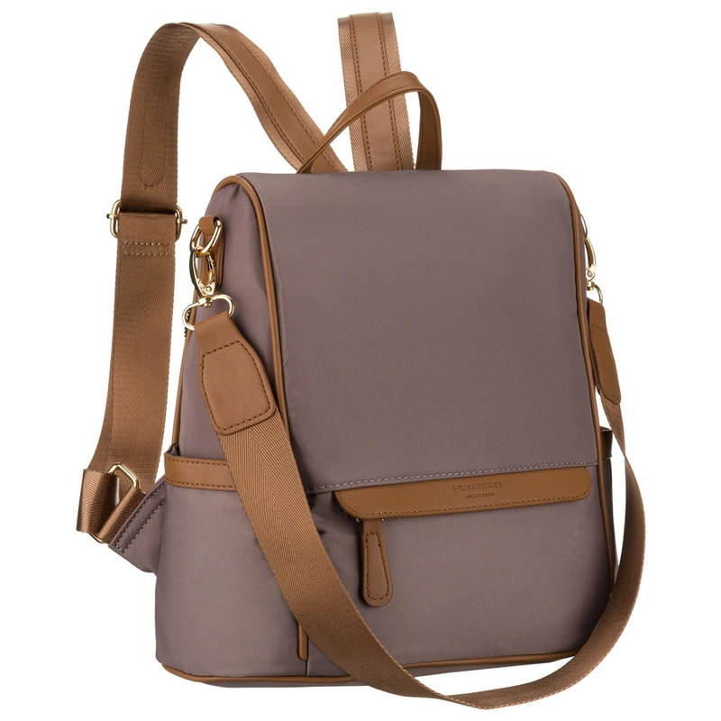 Miejski plecak damski z nylonu i skóry ekologicznej w beżowym kolorze - Peterson