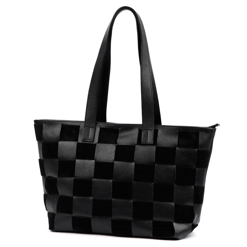 Ta duża torebka typu shopperbag to model stworzony z myślą o kobietach, które potrzebują przestrzeni bez rezygnowania z elegancji. Mieści format A4, dzięki czemu idealnie sprawdzi się w pracy, na uczelni czy podczas codziennych obowiązków. Pleciony wzór w formie szachownicy nadaje jej wyjątkowego stylu, czyniąc ją ponadczasowym dodatkiem o niepowtarzalnym uroku.