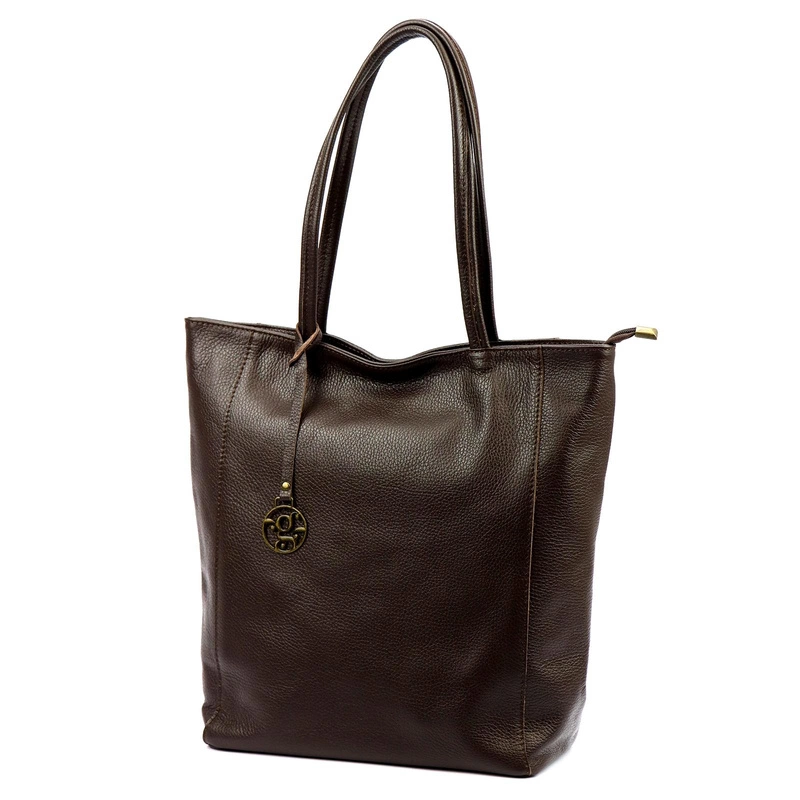 Skórzana duża damska shopperbag torebka na ramię z kieszeniami Gregorio