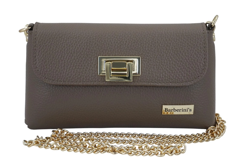 Elegancka torebka wieczorowa Barberinis w kolorze ciemnego beżu została wykonana z naturalnej skóry licowej. Podkreśl swój styl torebką dostępną w najnowszej ofercie naszego sklepu - elegancka torebka wieczorowa łączy ponadczasową klasykę z nutą nowoczesności. Wykonana z wysokiej jakości skóry naturalnej zachwyca subtelnym i starannym wykończeniem. To idealny dodatek na wieczorne wyjścia, wesela, uroczyste kolacje czy spotkania, kiedy liczy się każdy detal. Chcesz być informowana o nowej kolekcji, uzupełnieniu magazynowym lub aktualnych promocjach? Zapisz się do naszego newslettera - wraz z informacją o najnowszej kolekcji otrzymasz rabat 15% na zakupy. Skorzystaj z oferty naszego sklepu - gwarantujemy wysoką jakość produktów, solidne wykonanie oraz duży wybór modeli torebek oraz portfeli.