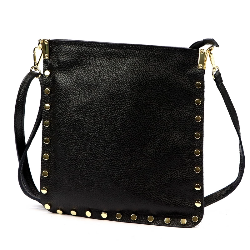 Zgrabna damska listonoszka skórzana torebka na ramię z dżetami Luka